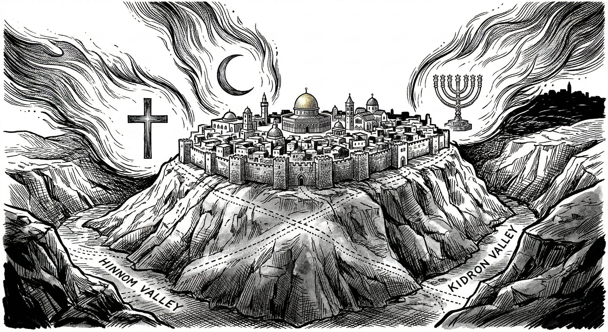 Before Jerusalem became the symbolic center of competing eschatologies, it already occupied a rare position in the geography of the ancient world. The Levant forms the narrow land bridge between Africa and Eurasia, and every imperial corridor connecting Egypt and Mesopotamia passes through it. Mediterranean coastal trade routes intersect here with inland caravan routes from Arabia and the Fertile Crescent. Jerusalem sits on the ridge controlling these crossings. Long before theology gave the city cosmic meaning, empires fought over this terrain because power moving between continents had to pass through it. Geography created the pivot. Theology transformed it into the imagined center of history.